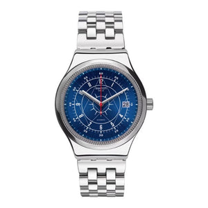 ساعة لكلا الجنسين 42 ملم من ماركة Swatch، • المميزات: - نظام الحركة: أوتوماتيكية. - شكل الهيكل: دائري. - قطر الهيكل: 42 ملم. - مادة هيكل الساعة: فولاذ مقاوم للصدأ. - مادة حزام الساعة: فولاذ مقاوم للصدأ. - لون السوار: فضي. - لون الهيكل: فضي. - مقاومة للماء حتى 30 متر.